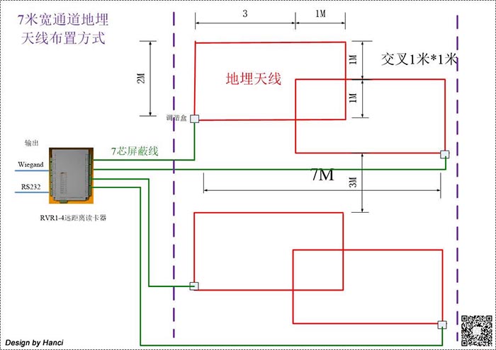 不方便地埋的时候可以采用竖立天线,固定在通道旁边: