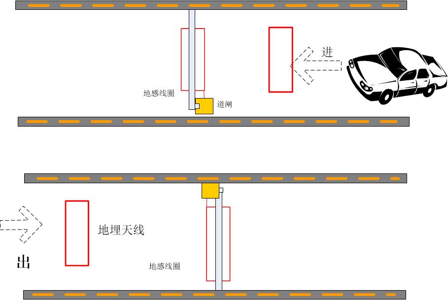 本单位的车辆,均分配一张CYPHERTAG远距离感应卡。在道闸前端放置远距离感应天线。当携带感应卡的车辆到达感应区域时,远距离读卡器读到感应卡里面的卡号,并传给控制器,控制器对读到的卡号进行合法性判断。如果卡片合法,控制器上的继电器动作,与之相连的智能道闸打开。如果卡片不合法,继电器不动作,道闸不能被打开, 同时计算机给出一个非法卡片的报警信息。